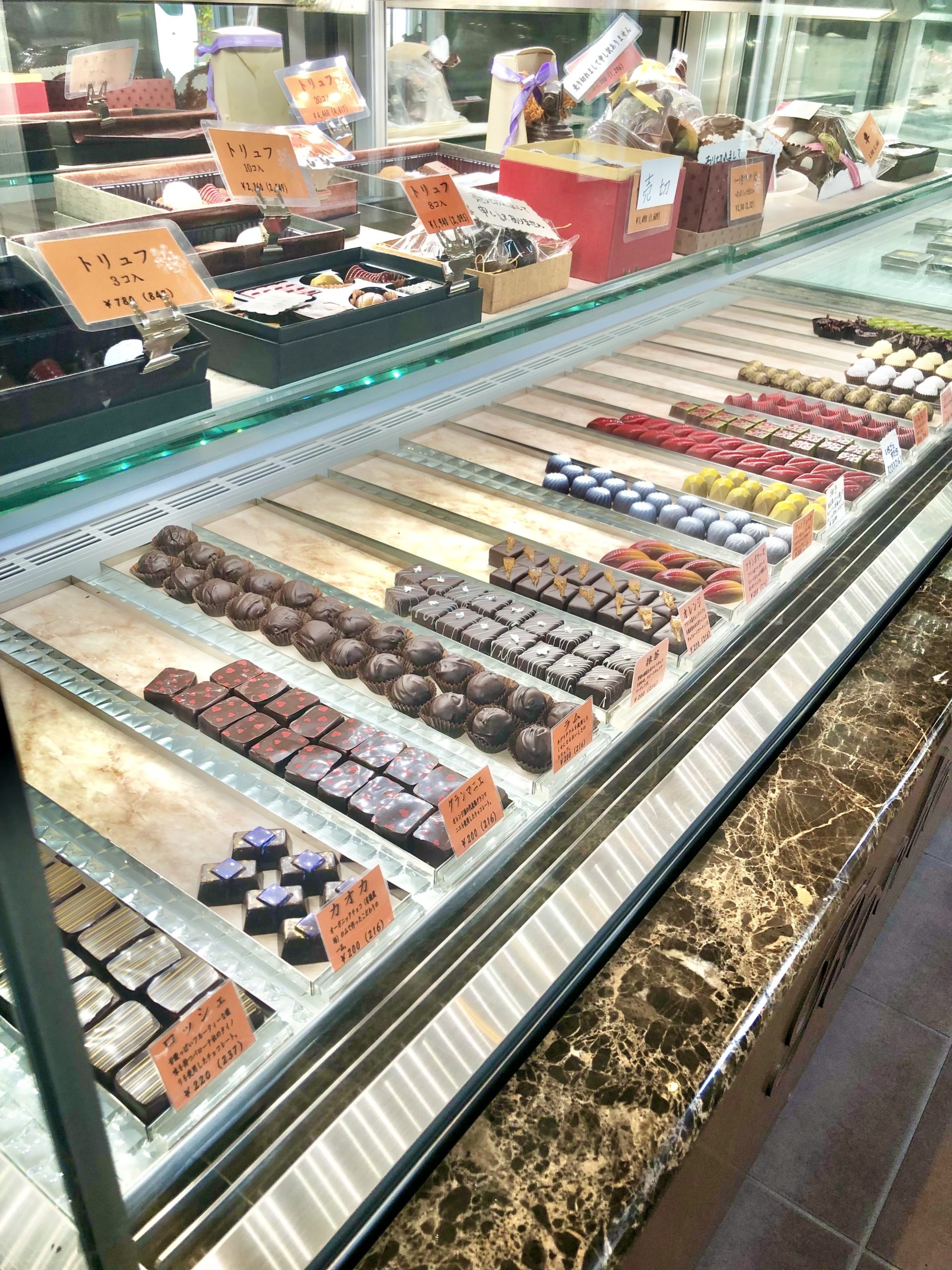 二段になったショーケースの上段は箱入りのトリュフ、下段は一粒ずつ自分でセレクトして買えるようになっていました。