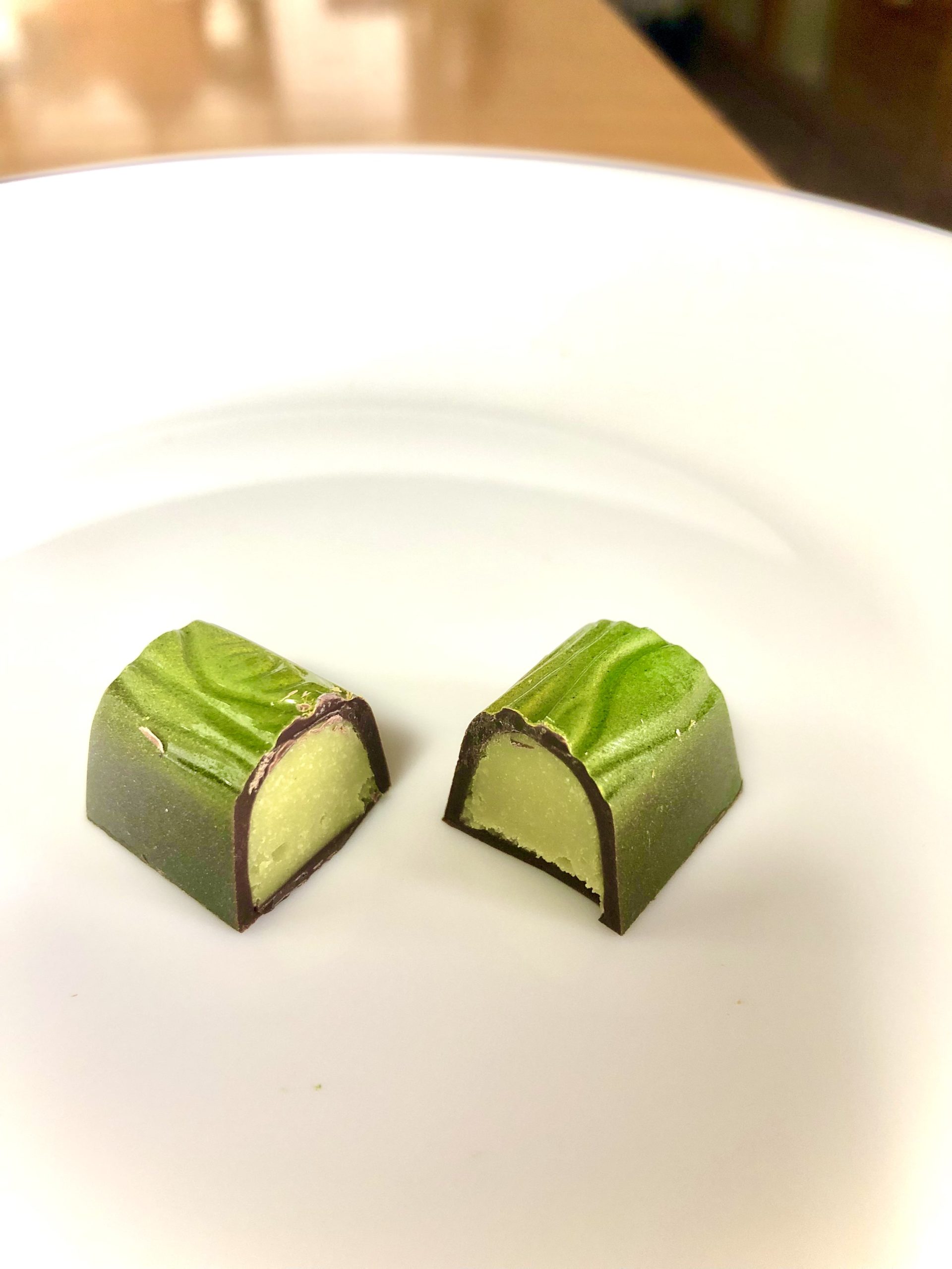 ガナッシュが緑で見た目からピスタチオのイメージができます。