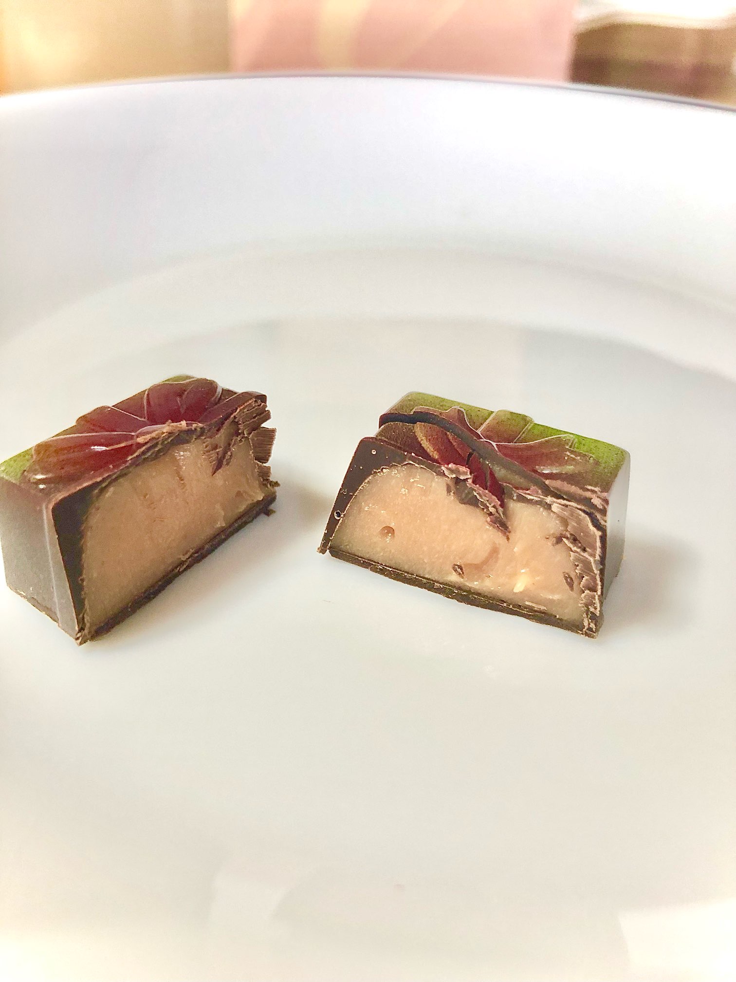 中のピンクのガナッシュはフランボワーズピューレが入っていて爽やかな酸味が感じられました。